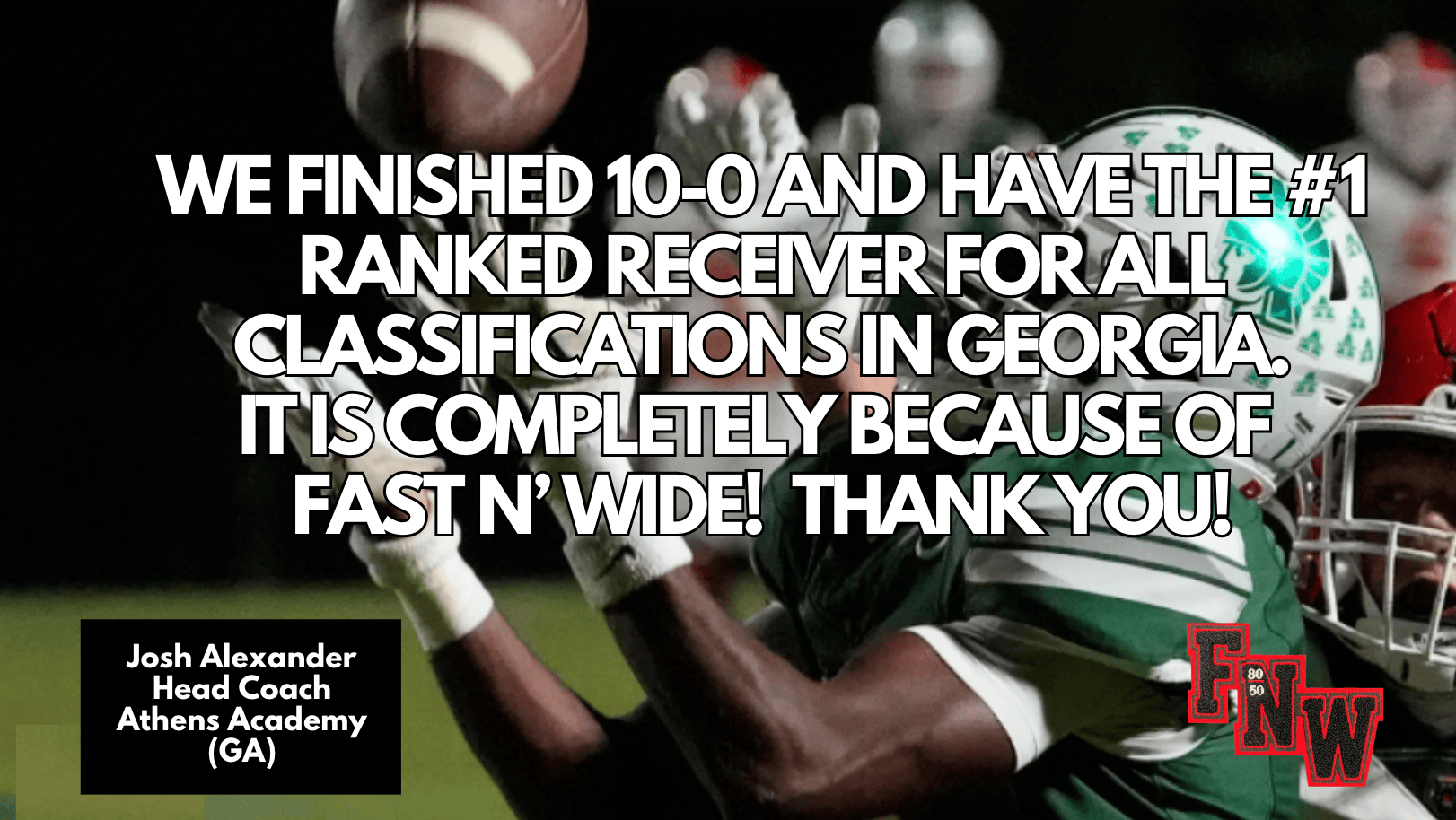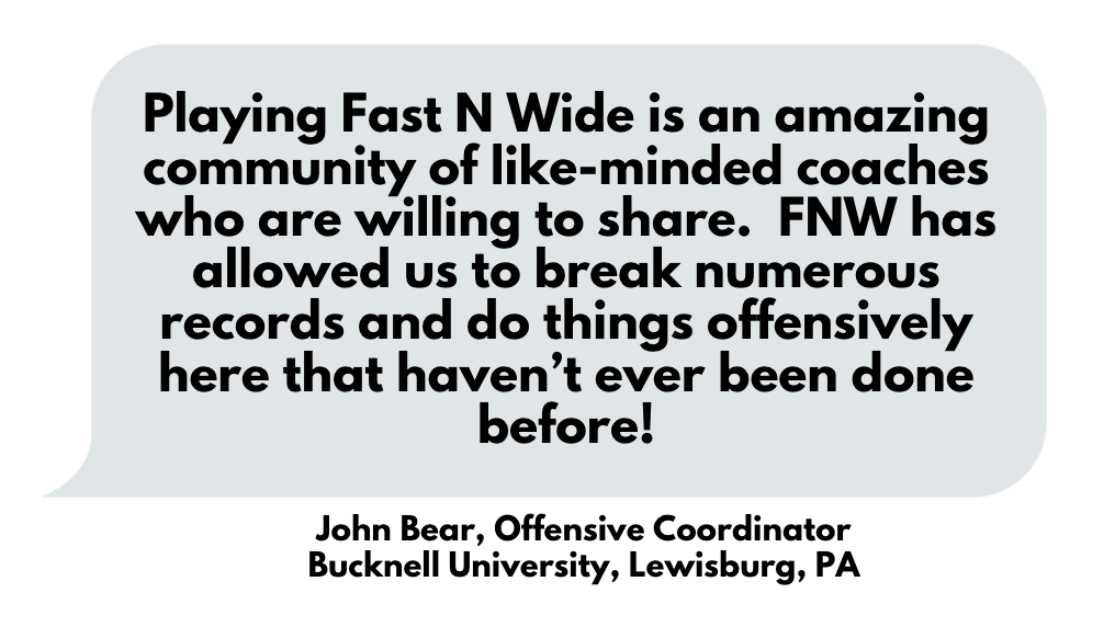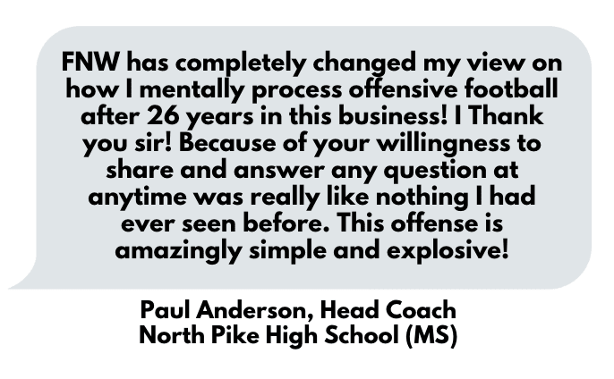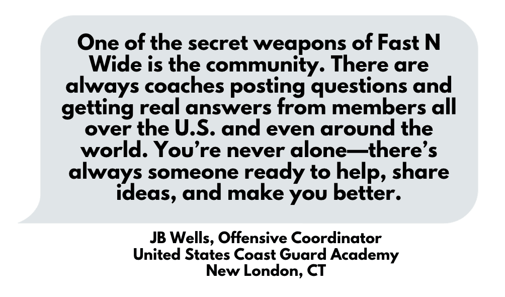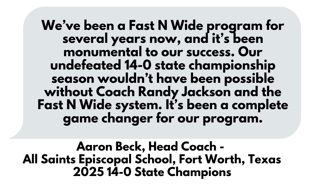 "Fast N Wide is a game changer because of its simplicity and relentless execution. Coaches all over the world are trusting tempo and the ‘law of the field’ instead of beating their heads against the wall every weekend trying to outsmart the defensive coordinator across the field. This system creates stress through alignment, spacing, and speed—not complexity. It’s about playing fast, being efficient, and winning with clarity. You don’t need more plays—you need better execution. That’s the power of Fast N Wide."